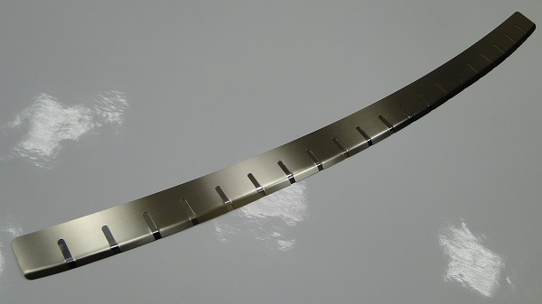 Основной функцией накладки на задний бампер является защита лакокрасочного покрытия бампера от царапин и повреждений, появляющихся при разгрузке багажного отделения автомобиля. Накладка на задний бампер отлично вписывается в экстерьер автомобиля и очень хорошо дополняет установленный на автомобиле заводской хром пакет. Накладка на задний бампер, так же как и накладки на пороги изготовлены из нержавеющей стали индивидуально для каждого автомобиля. Толщина стали у накладки на задний бампер примерно 0.8 мм, что позволяет без опасений ставить на нее всякого рода груз. Защитная накладка на задний бампер обеспечивает Вашему автомобилю агрессивный неповторимый стиль. Благодаря применению современной технологии предлагаем наш самый новый продукт - профилированную накладку с загнутой кромкой, которая создаст ещё более эффективную защиту Вашему автомобилю.