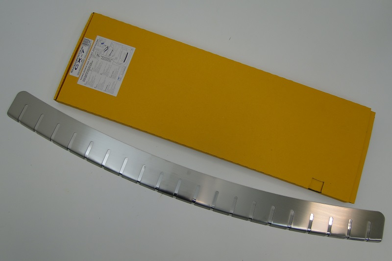 Основной функцией накладки на задний бампер является защита лакокрасочного покрытия бампера от царапин и повреждений, появляющихся при разгрузке багажного отделения автомобиля. Накладка на задний бампер отлично вписывается в экстерьер автомобиля и очень хорошо дополняет установленный на автомобиле заводской хром пакет. Накладка на задний бампер, так же как и накладки на пороги изготовлены из нержавеющей стали индивидуально для каждого автомобиля. Толщина стали у накладки на задний бампер примерно 0.8 мм, что позволяет без опасений ставить на нее всякого рода груз. Защитная накладка на задний бампер обеспечивает Вашему автомобилю агрессивный неповторимый стиль. Благодаря применению современной технологии предлагаем наш самый новый продукт - профилированную накладку с загнутой кромкой, которая создаст ещё более эффективную защиту Вашему автомобилю.