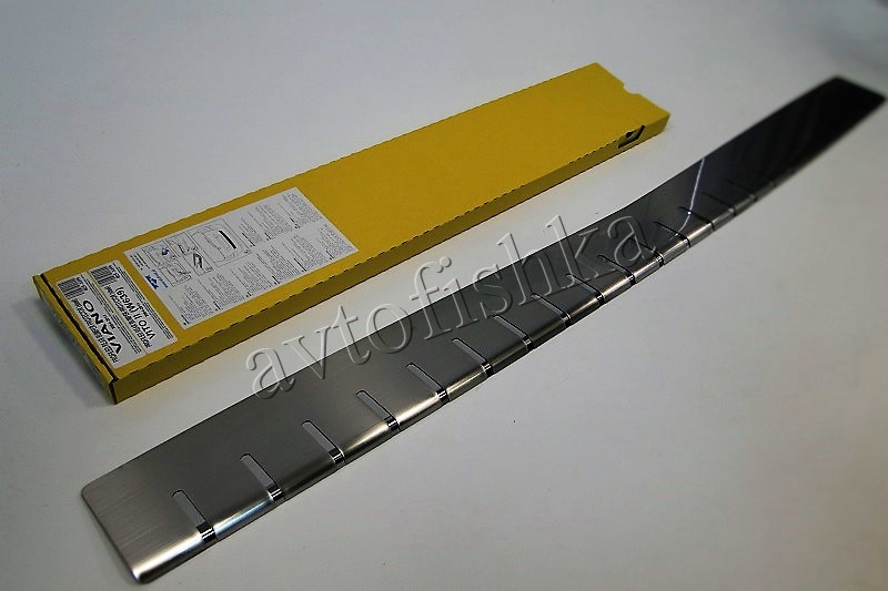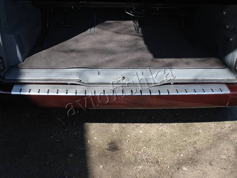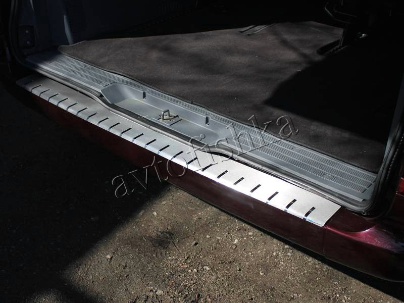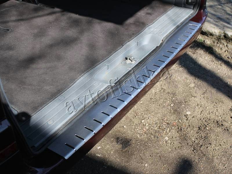 Основной функцией накладки на задний бампер является защита лакокрасочного покрытия бампера от царапин и повреждений, появляющихся при разгрузке багажного отделения автомобиля. Накладка на задний бампер отлично вписывается в экстерьер автомобиля и очень хорошо дополняет установленный на автомобиле заводской хром пакет. Накладка на задний бампер, так же как и накладки на пороги изготовлены из нержавеющей стали индивидуально для каждого автомобиля. Толщина стали у накладки на задний бампер примерно 0.8 мм, что позволяет без опасений ставить на нее всякого рода груз. Защитная накладка на задний бампер обеспечивает Вашему автомобилю агрессивный неповторимый стиль. Благодаря применению современной технологии предлагаем наш самый новый продукт - профилированную накладку с загнутой кромкой, которая создаст ещё более эффективную защиту Вашему автомобилю.
