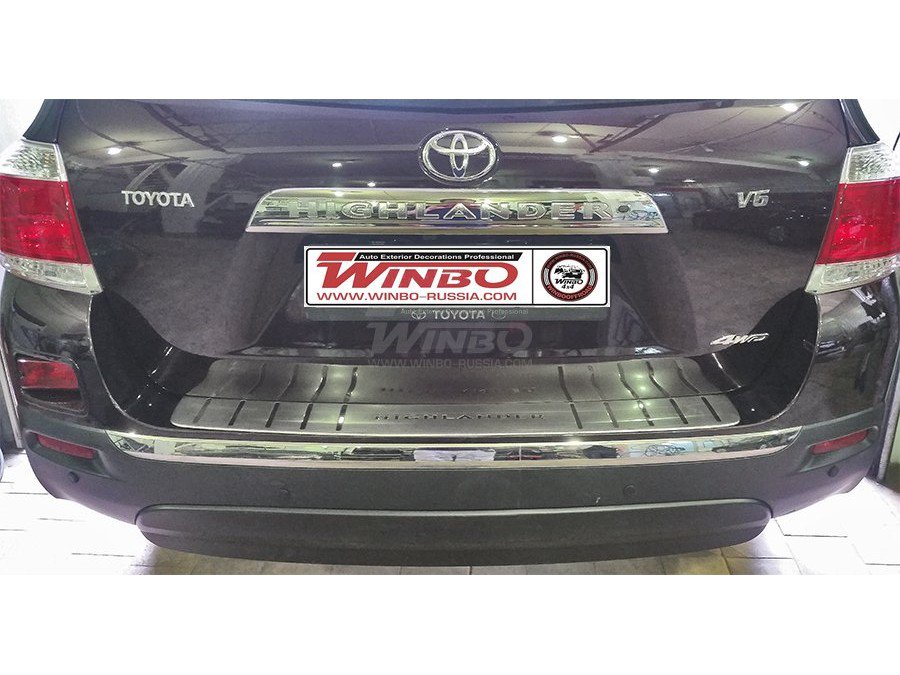 Накладка заднего бампера Тойота Хайлендер, купить которую всегда доступно в нашем магазине тюнинга - именно та вещь, которой не хватает Вашему авто. Она значительно улучшит экстерьер Вашего авто, придаст ему свежести и оригинальности. Производитель авто аксессуаров "Winbo" гарантирует исключительно высокое качество данного аксессуара.