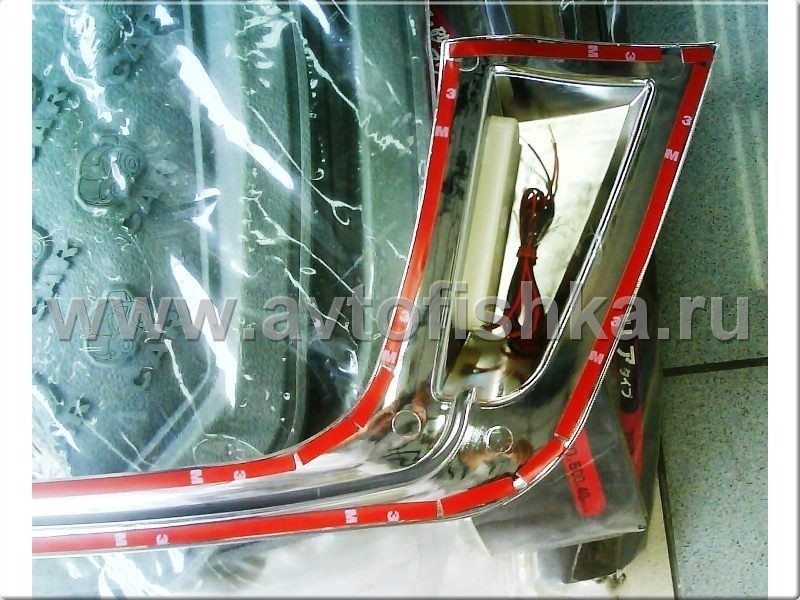 —Toyota Land Cruiser 200 (08-) накладка задней двери - рамка номерного знака хромированная, со светодиодной подсветкой.