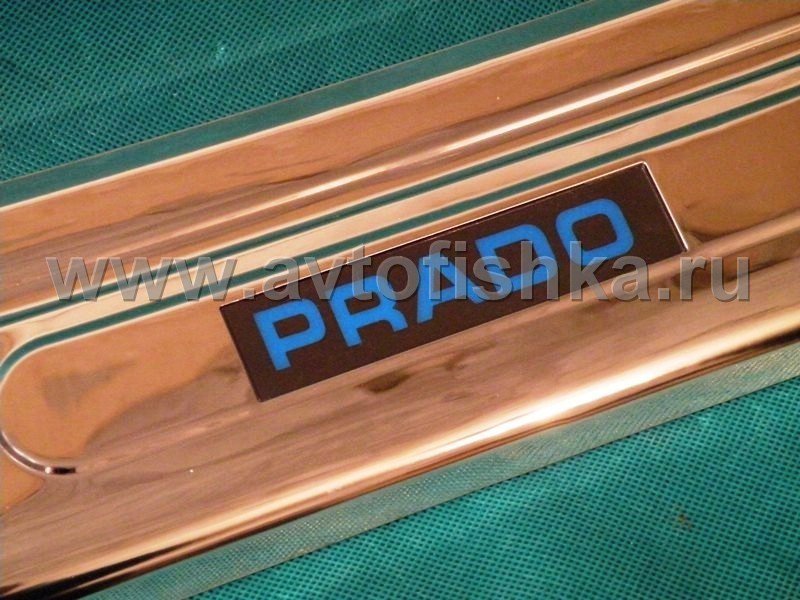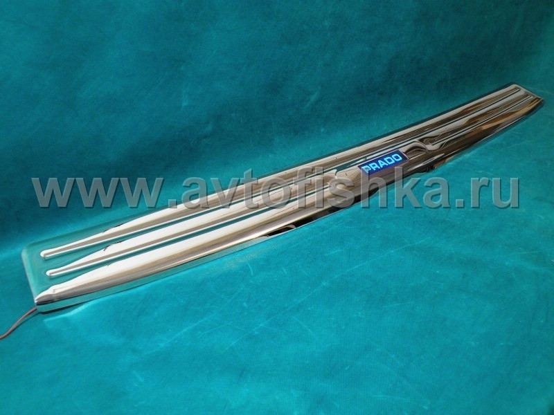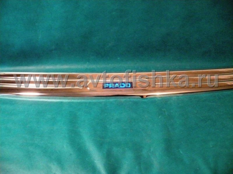 —Toyota Land Cruiser Prado 150 (10-) накладка заднего бампера верхняя, хромированная, со светящейся надписью "PRADO"
