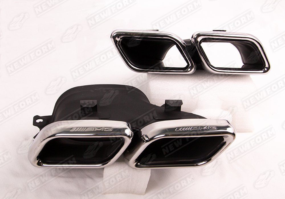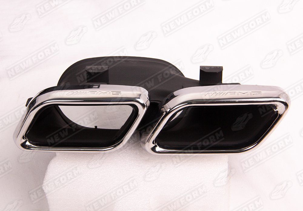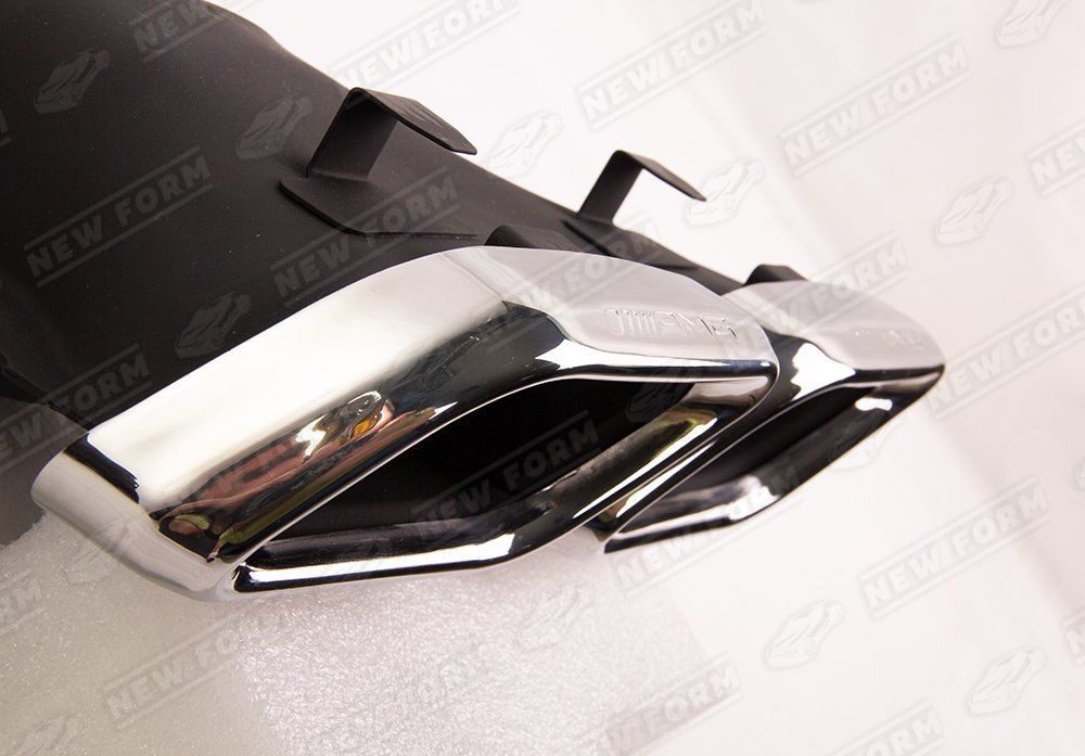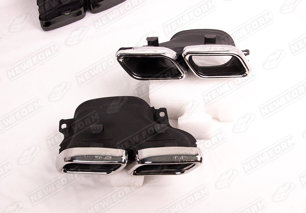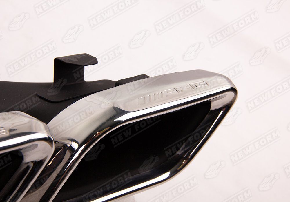 Насадки на глушитель 6.3 AMG для автомобилей Mercedes C-class W205. Данные насадки предназначены для установки в диффузор заднего бампера 6.3 AMG на автомобили Mercedes C-class W205 с 2014 по 2018 год выпуска. Насадки на глушитель выполнены из нержавеющей стали. Насадки устанавливаются четко в штатные места диффузора заднего бампера 6.3 AMG без доработок. Насадки на глушитель 6.3 AMG выполнены в цвете хром. На насадки нанесена гравировка AMG.