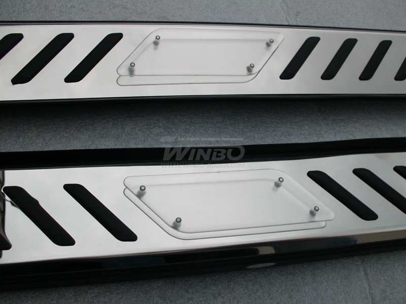 Обязательным и весьма полезным дополнением к Вашему авто станут боковые пороги на авто от "WINBO".Установленные на автомобиль они кратно облегчат посадку-высадку в автотранспортное средство, а перфорированные пластиковые элементы на внешней поверхности порога позволят избежать скольжения при любых погодных условиях. Кроме того, установленные на авто пороги подобной конструкции, уберегут нижнюю часть кузова от различных повреждений, а боковые стороны от загрязнений. Купить пороги на авто универсального исполнения с установкой на большой ряд кросоверов, всегда можно в нашем интернет магазине - Автофишка.рф