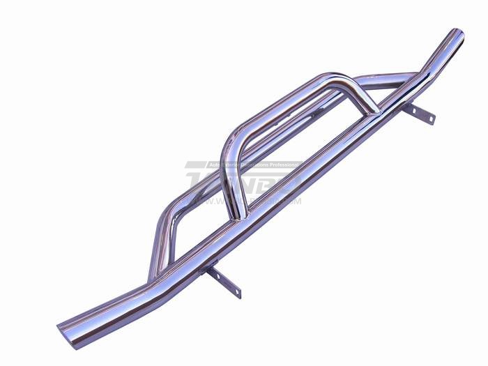 Защита заднего бампера - нужное и, одновременно, модное дополнение для Вашего авто. Благодаря тому, что защита сделана из нержавеющей стали, она имеет стильный "серебристый" цвет и невероятную прочность. Защищает бампер от ненужных трещин, ссадин, царапин; кроме того, обладает приятной для глаз эргономикой, именно поэтому она хорошо впишется в дизайн Вашего «любимца».