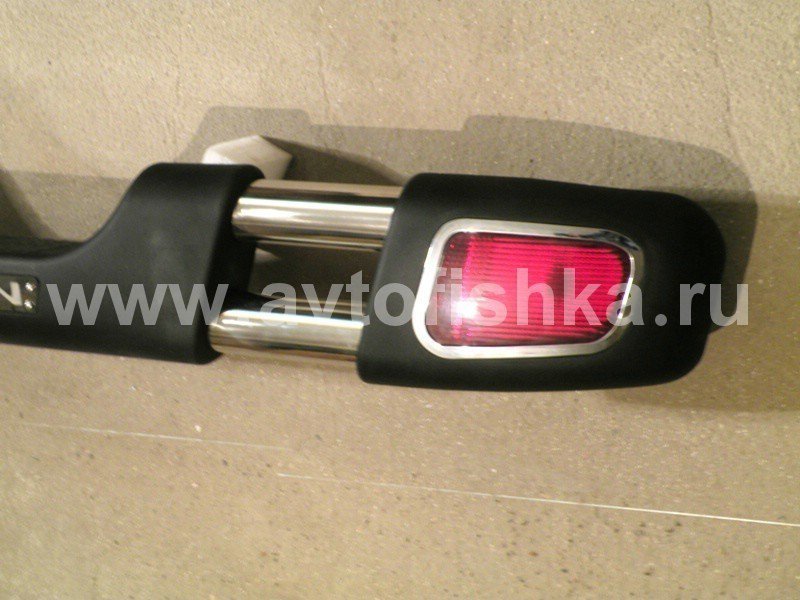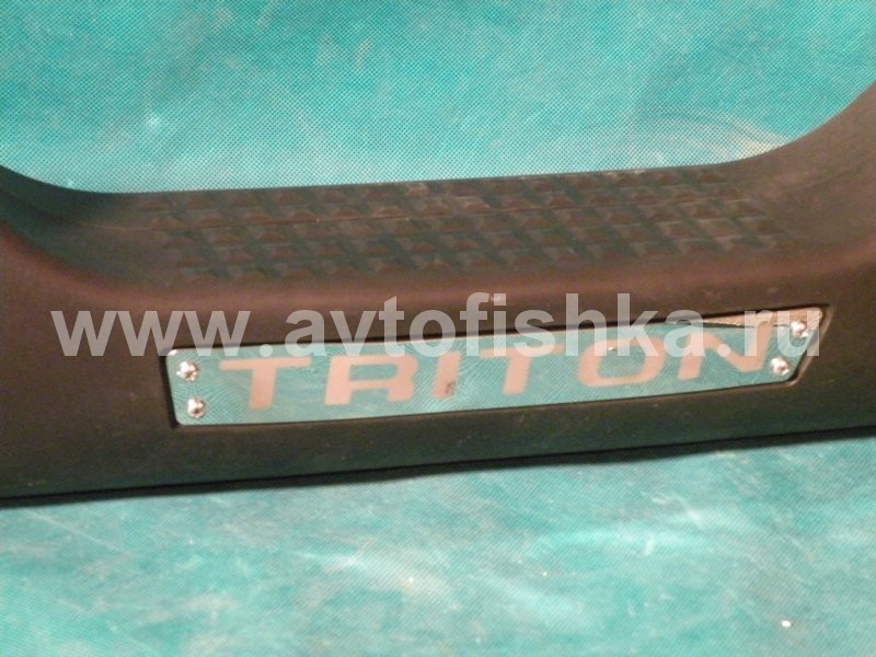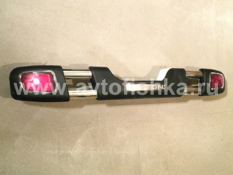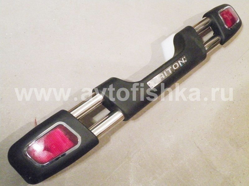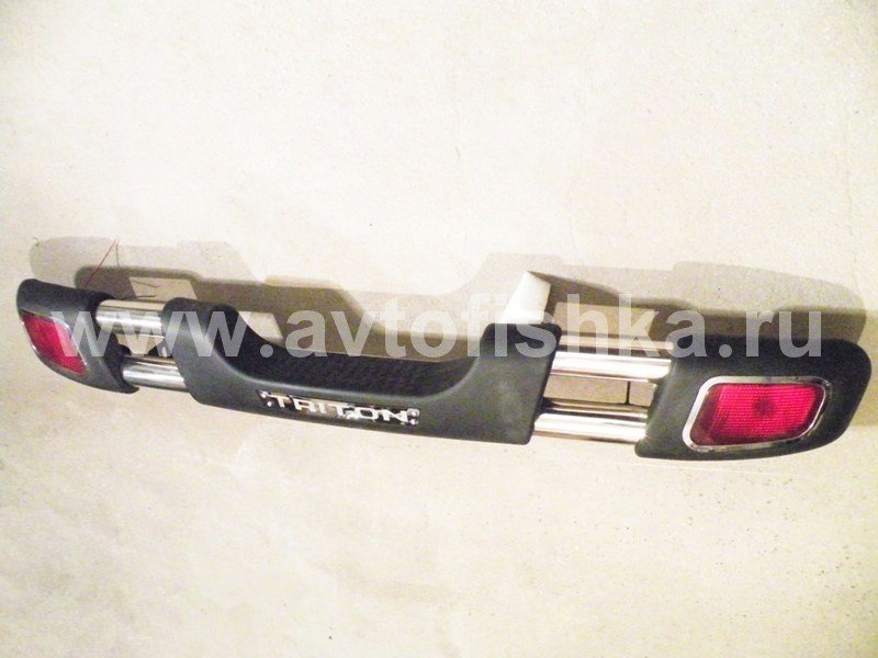 —Mitsubishi L200 Triton (05-) бампер задний из нержавеющей стали, с пластиковыми окончаниями, фонарями рефлекторами, дизайн APOLO