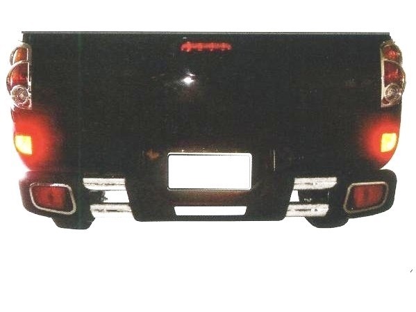Mitsubishi L200 Triton (05-) бампер задний из нержавеющей стали, с пластиковыми окончаниями, фонарями рефлекторами, дизайн APOLO