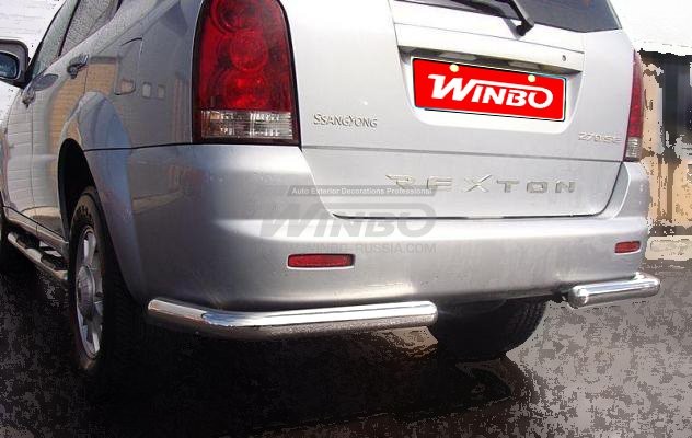 Ssang Yong Rexton (02-07) уголки задние - защита заднего бампера, труба 76 мм из нержавеющей стали, комплект 2 шт.
