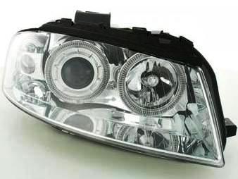—Audi A3 (03-08) фары передние черные ксеноновые, со светящимися ободками, под электрокорректор, комплект 2 шт.