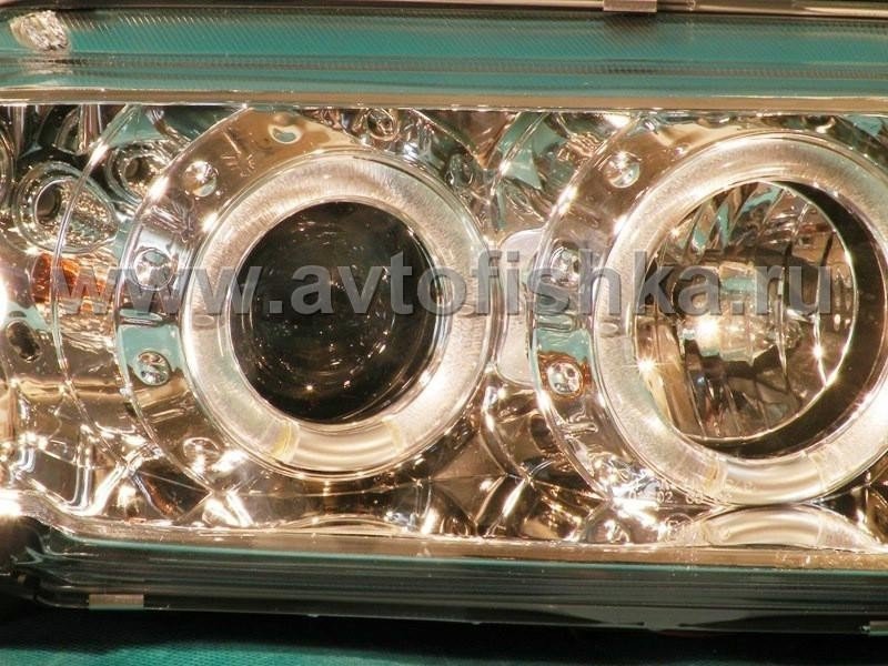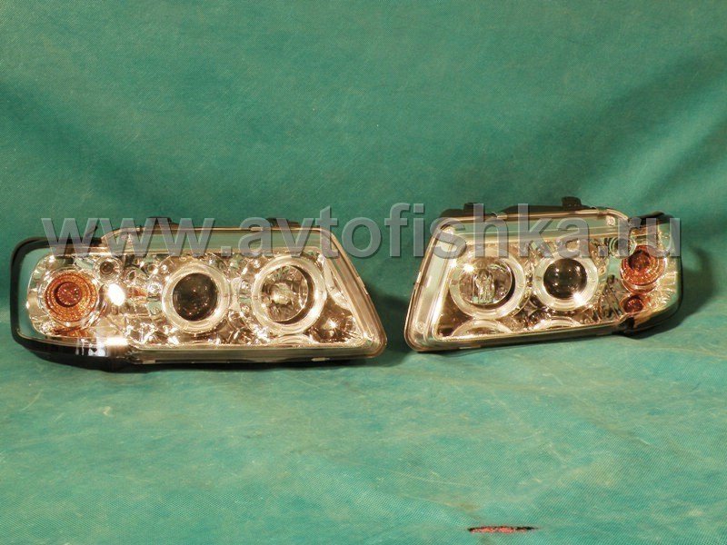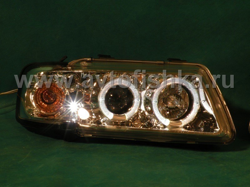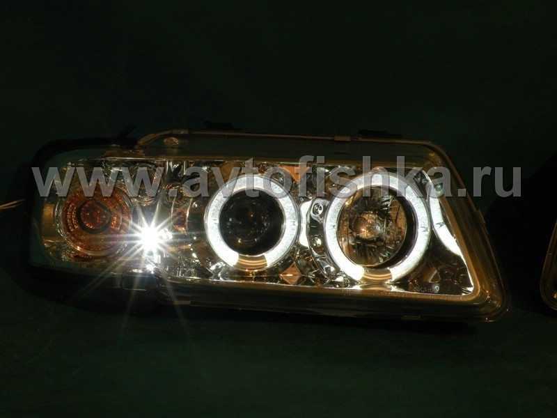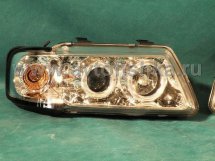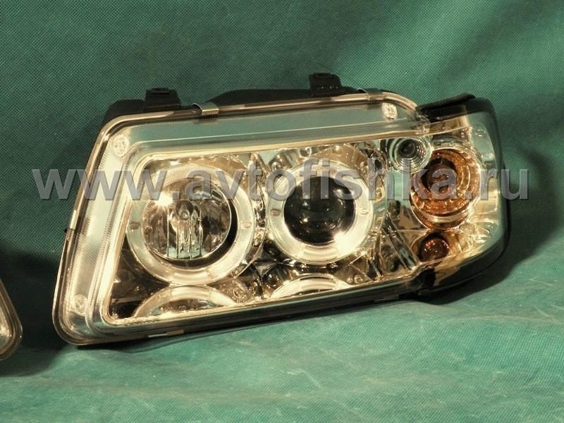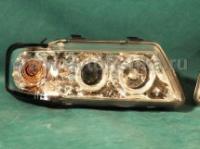 —Audi A3 (96-02) передние фары линзовые хромированные, со светящимися ободками, со светодиодами, комплект 2 шт.
