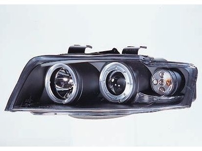Audi A4 (01-04) фары передние линзовые черные, со светящимися ободками, комплект 2 шт.
