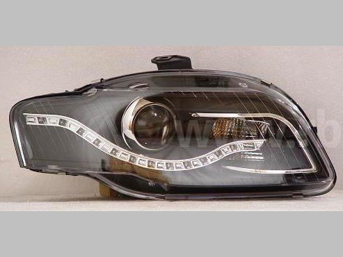 —Audi A4 (05-07) фары передние линзовые черные, со светодиодной подсветкой, с электрокорректором, комплект 2 шт.
