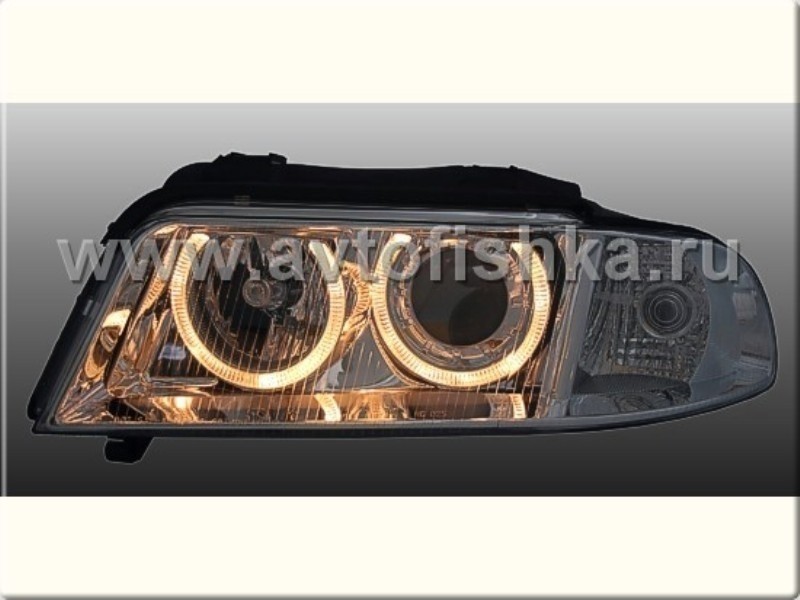 —Audi A4 (99-00) фары передние линзовые хромированные, со светящимися ободками, под ксенон и корректор, комплект 2 шт.