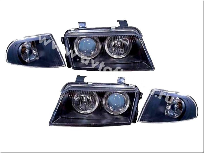 —Audi A4, S4 (95-98) фары передние линзовые черные, со светящимися ободками, под ксенон, комплект с поворотниками лев. и прав.