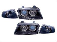 Audi A4, S4 (95-98) фары передние линзовые черные, со светящимися ободками, под ксенон, комплект с поворотниками лев. и прав.