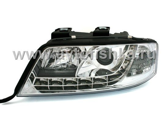 —Audi A6 (01-03) фары передние линзовые хромированные, со светодиодной подсветкой, комплект 2 шт.