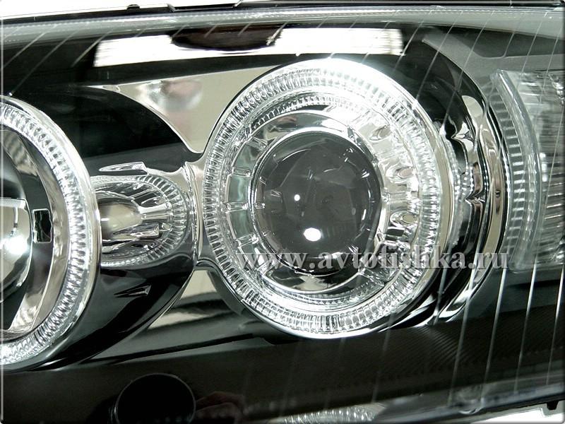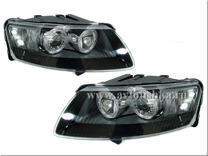 —Audi A6 (05-08) 4F, C6 фары передние линзовые черные, со светящимися ободками, под корректор, комплект 2 шт.