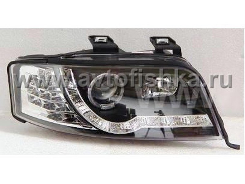 —Audi A6 4B,C5 (01-03) фары передние черные, со светящимися ободками, линзовые cветодиодные c DRL