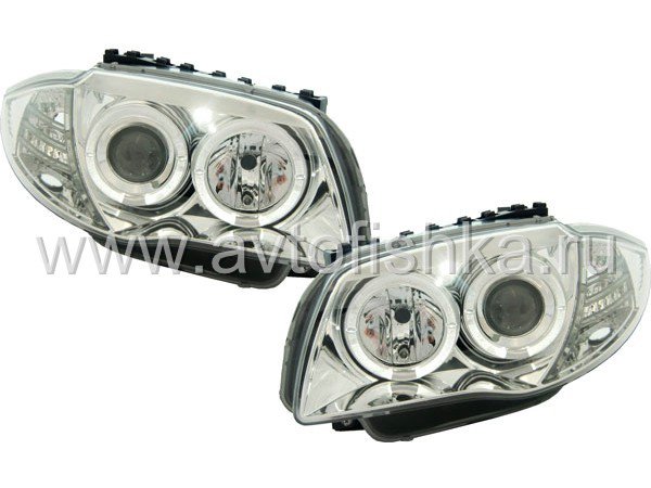 —BMW 1 E87 (04-) фары передние хромированные линзовые, со светящимися ободками, комплект 2 шт.