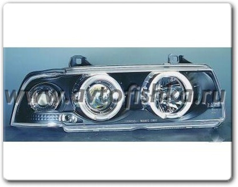 —BMW 3 E36 2 дв. купе фары передние черные со светящимися ободками, комплект 2 шт.