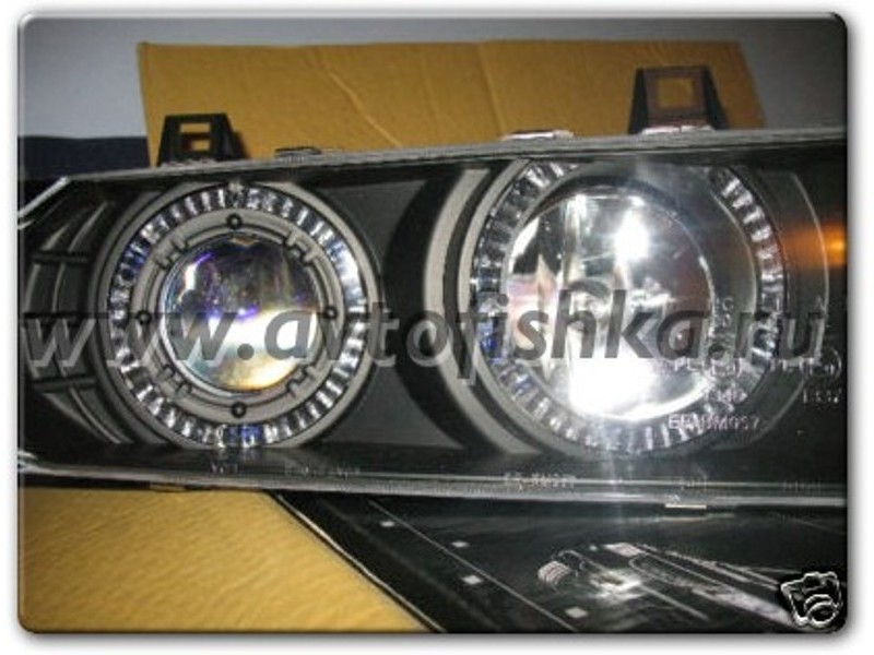 BMW 3 E36 2 дв. купе фары передние черные со светящимися ободками, комплект 2 шт.