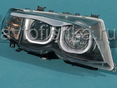 BMW 3 E46 (01-04) седан фары передние линзовые черные со светящимися ободками DRL, комплект 2 шт.