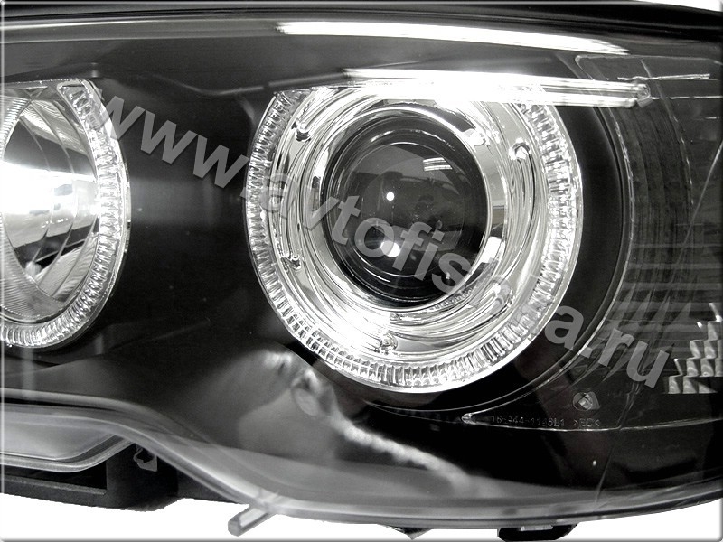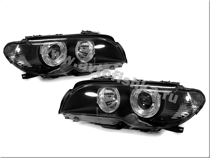 BMW 3 E46 (03-06) 2 дв. фары передние линзовые черные, со светящимися ободками, с мотором электрокорректора, комплект 2 шт.