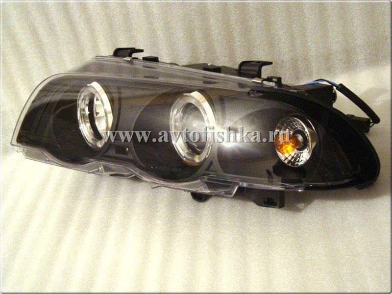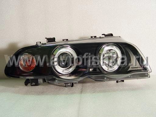 —BMW 3 E46 (98-01) 4 дв. седан фары передние черные, со светящимися ободками, комплект 2 шт.