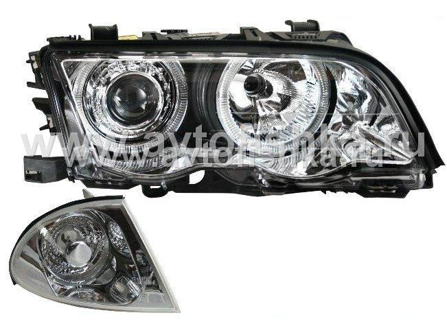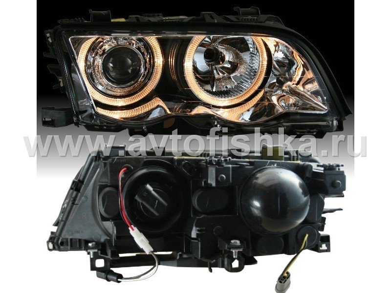 BMW 3 E46 (98-01) 4 дв. седан фары передние хромированные, со светящимися ободками, с регулирующим мотором, комплект 2 шт.