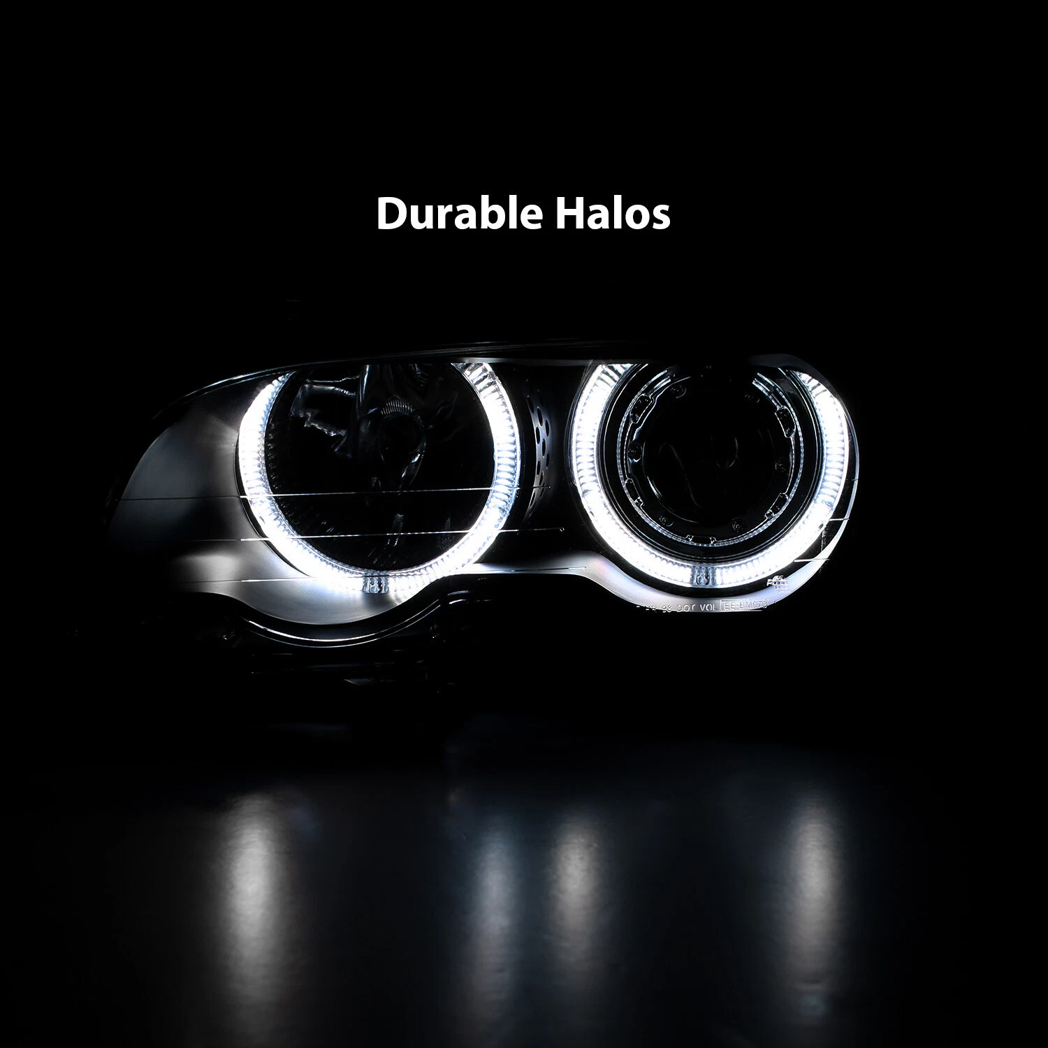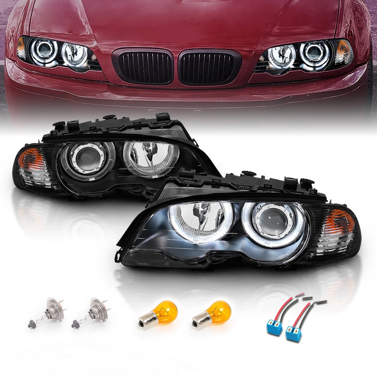 Передние фары для BMW 3 Series E46 Купе / M3 (2000-2006) | Черные линзованные | Двойные светодиодные ободки