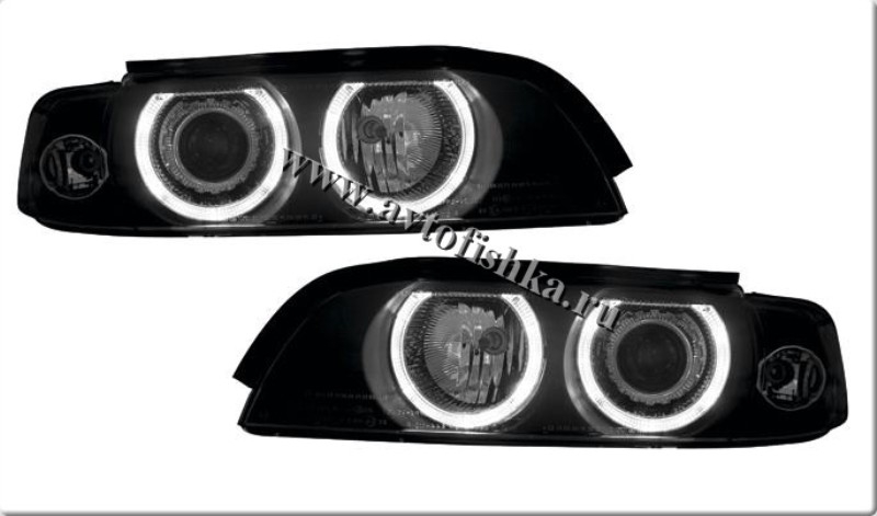 —BMW 5 E39 (95-03) фары передние черные, со светящимися ободками, с мотором электрокорректора, комплект 2 шт.