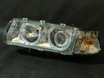 BMW 7 E38 (95-98) фары передние линзовые хромированные, с корректором, со светящимися ободками, с указателем поворотов, комплект 2 шт.