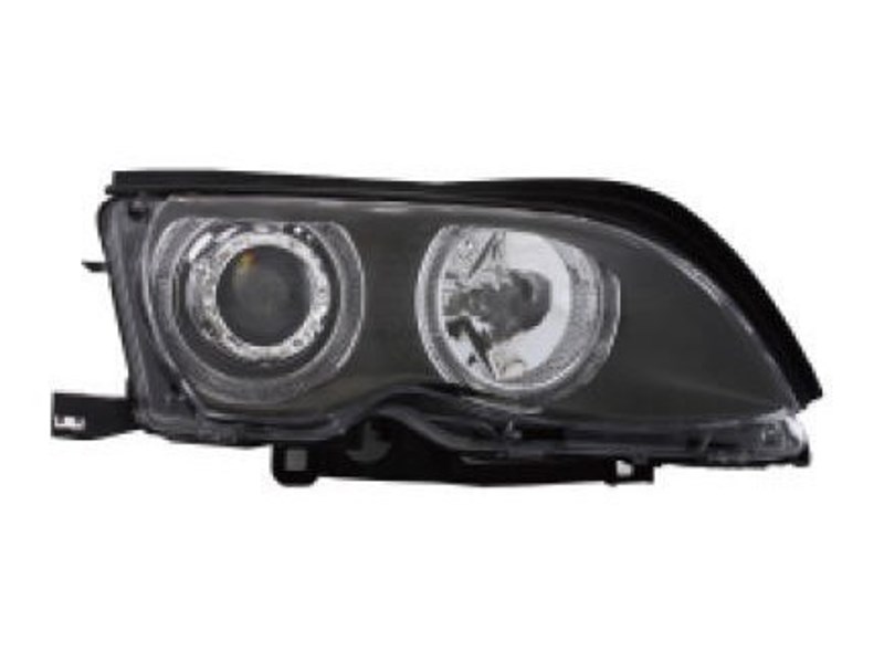 —BMW E46 (01-04) фары передние линзовые черные, со светящимися ободками, с моторами электрокорректора