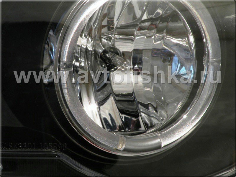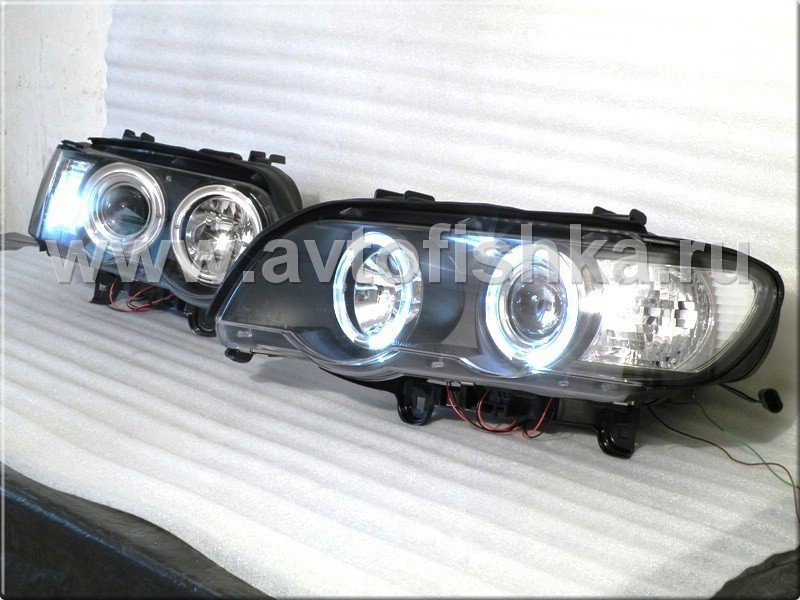 —BMW X5 (98-03) фары передние линзовые черные, со светящимися ободками, с электрокорректором, комплект 2 шт.