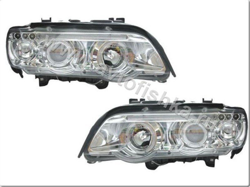—BMW X5 (98-03) фары передние линзовые хромированные, со светящимися ободками, с белыми поворотниками, комплект 2 шт.