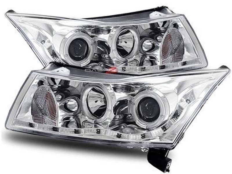 Chevrolet Cruze (08-) хромированные фары линзовые передние со светящимися ободками и диодной подсветкой DRL, комплект 2 шт.