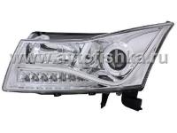 —Chevrolet Cruze (08-) хромированные линзовые передние фары со светящимися ободками и диодной подсветкой в стиле Audi A8, комплект 2 шт.