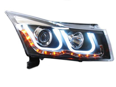 —Chevrolet Cruze (09-) фары черные в стиле VW с DRL и светодиодным повторителем