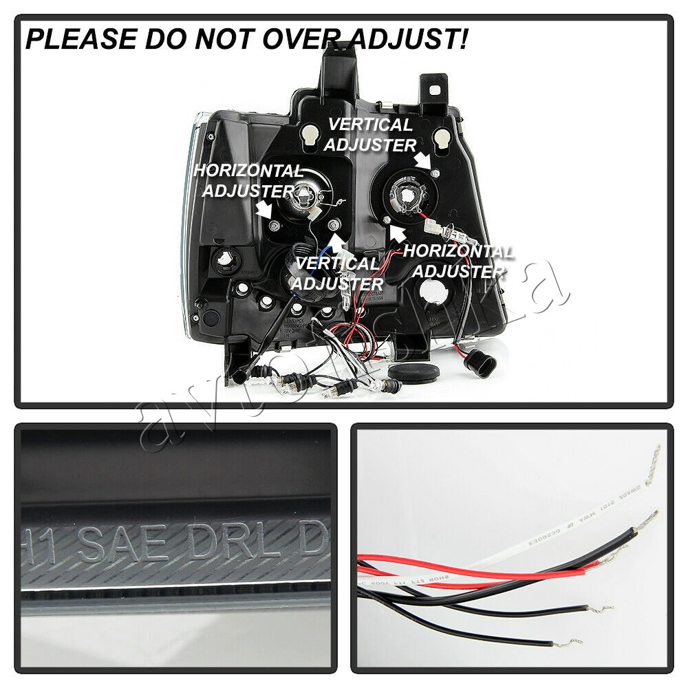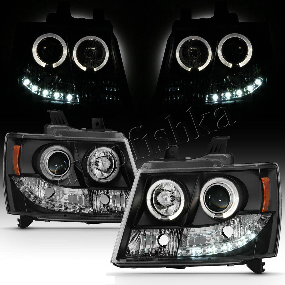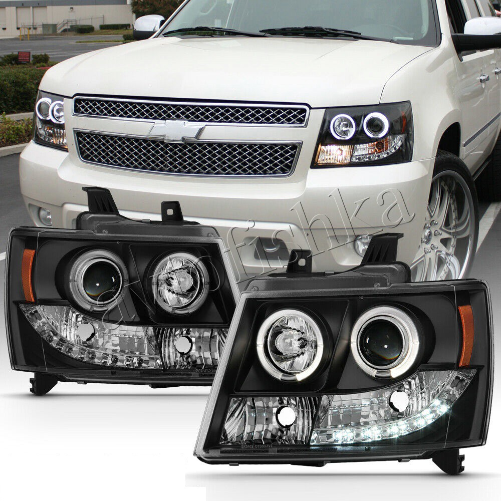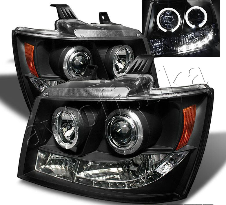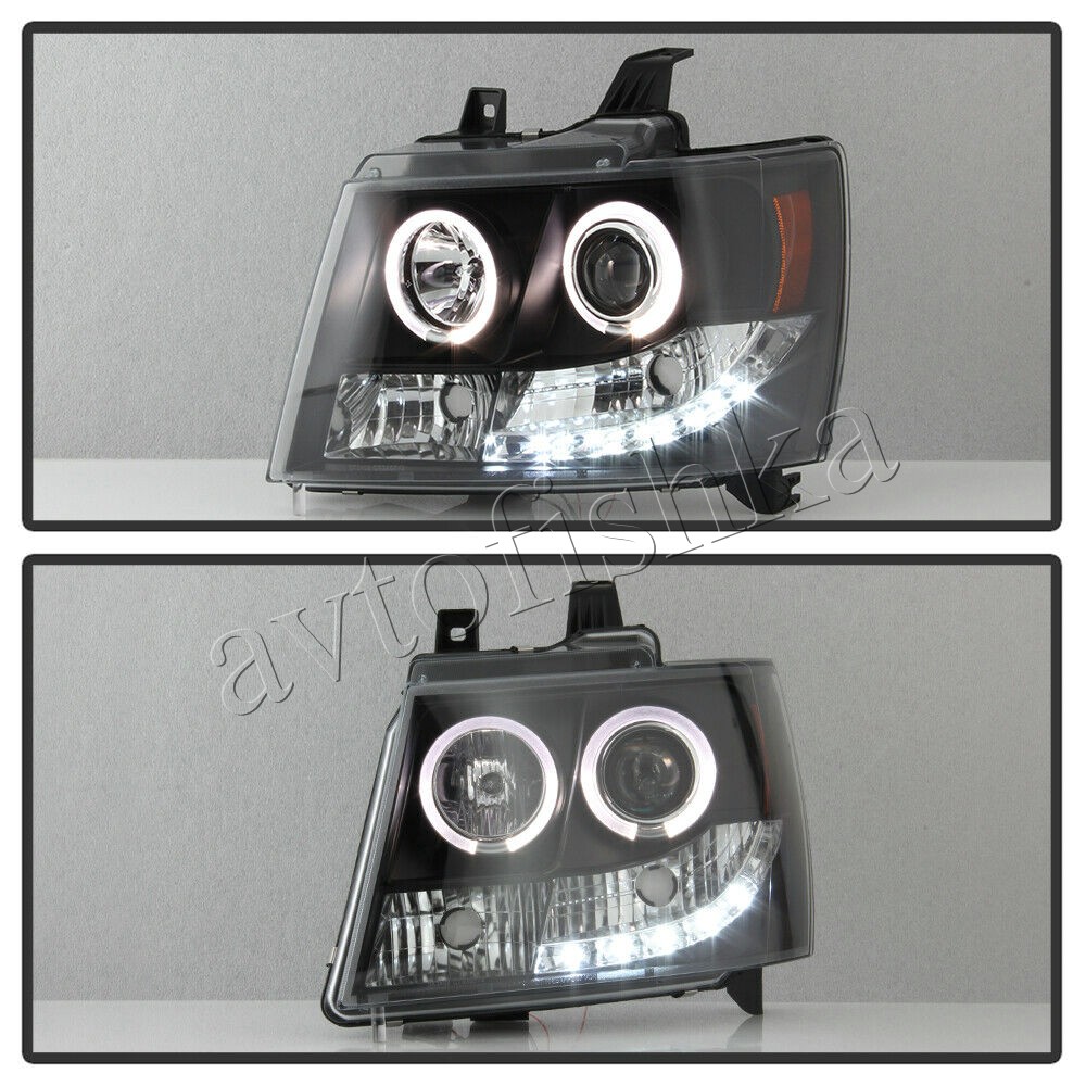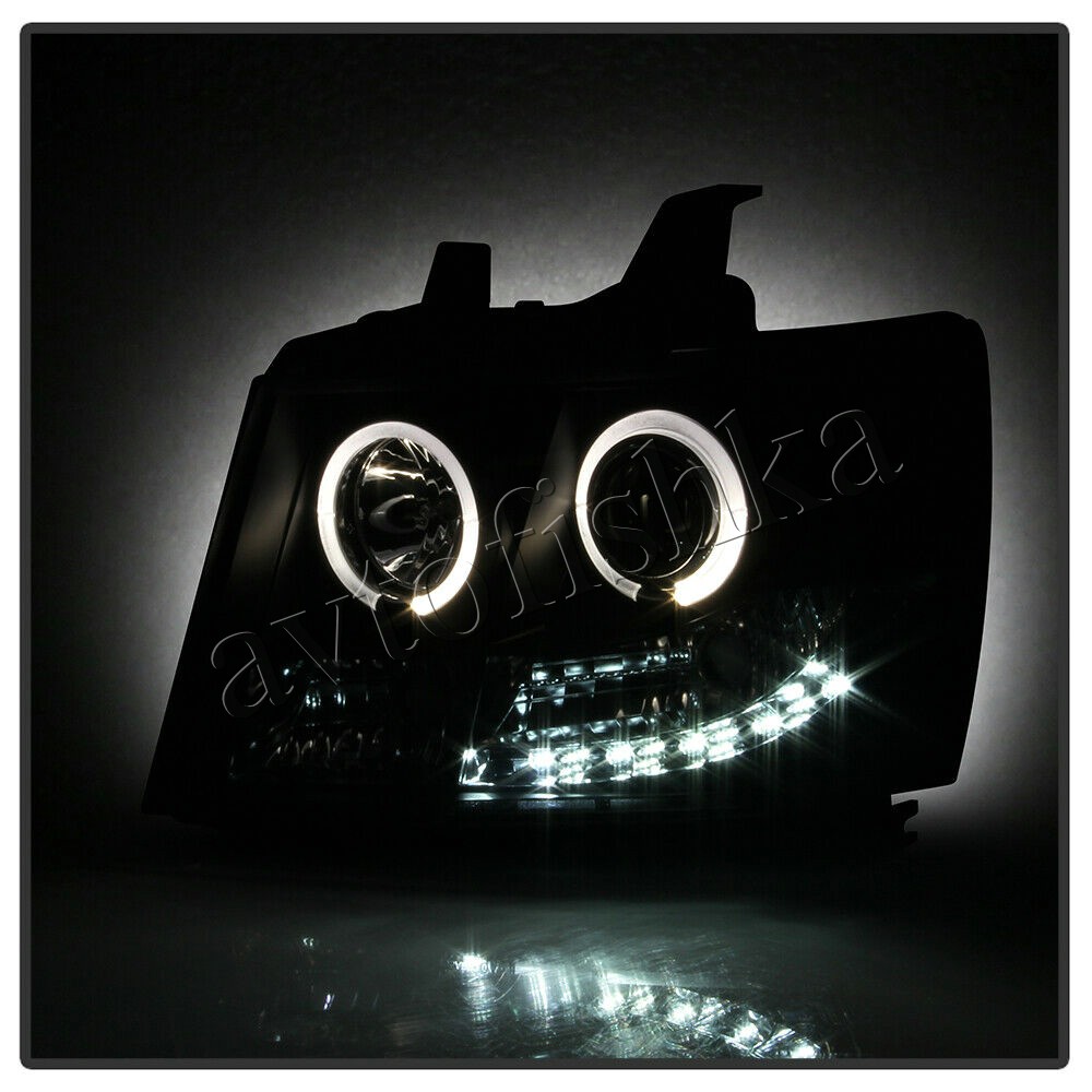Chevrolet Tahoe (07-), Avalanche (07-) фары передние линзовые черные, со светящимися ободками и светодиодной подсветкой
