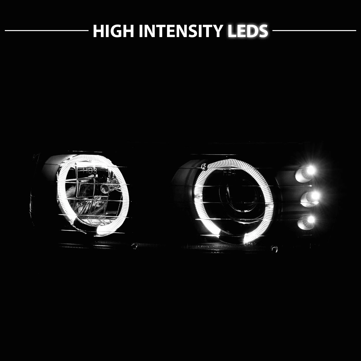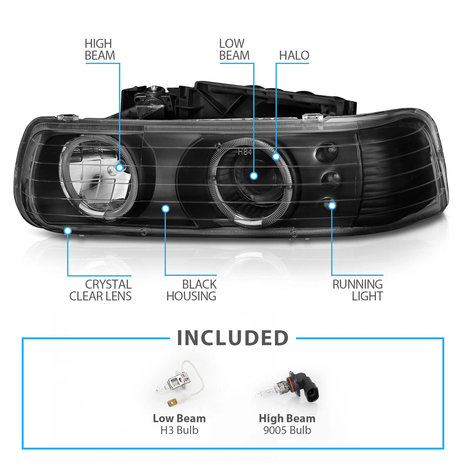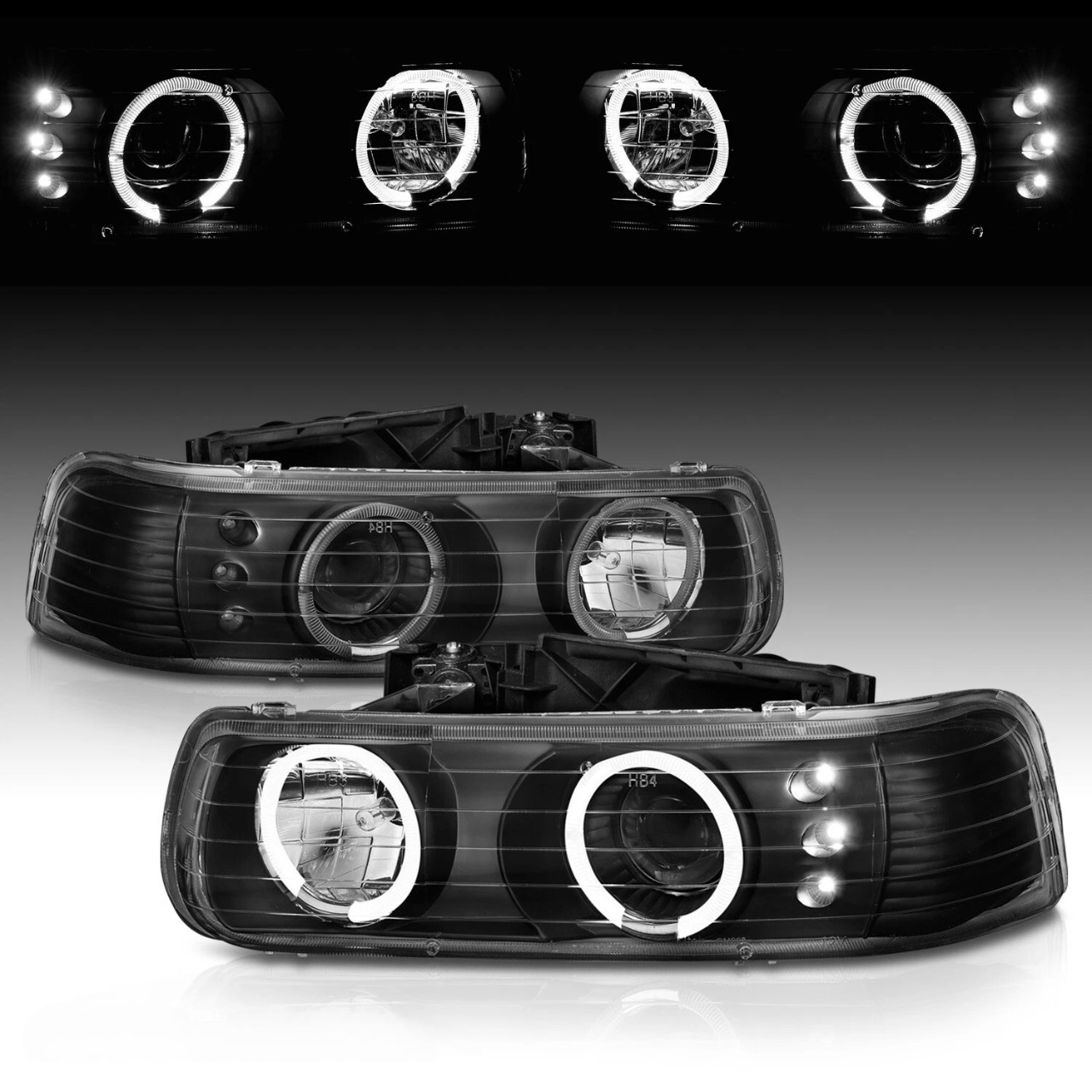 —Chevrolet Tahoe C10 (1999-2006) черные передние фары со светящимися ободками, тюнинг