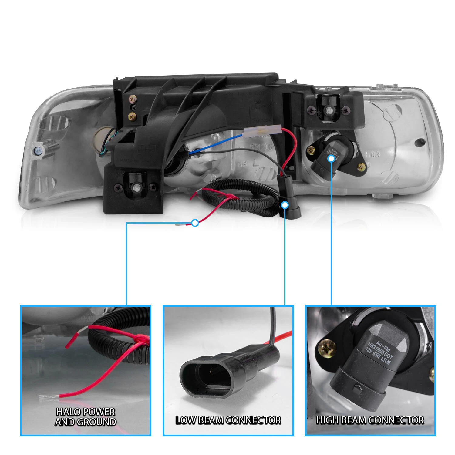 • Полная готовность к установке: В комплект уже входят галогеновые лампы 9005 (дальний свет) и H3 (ближний свет). Вам не требуется ничего докупать — просто перенесите лампы поворотников со старых фар.