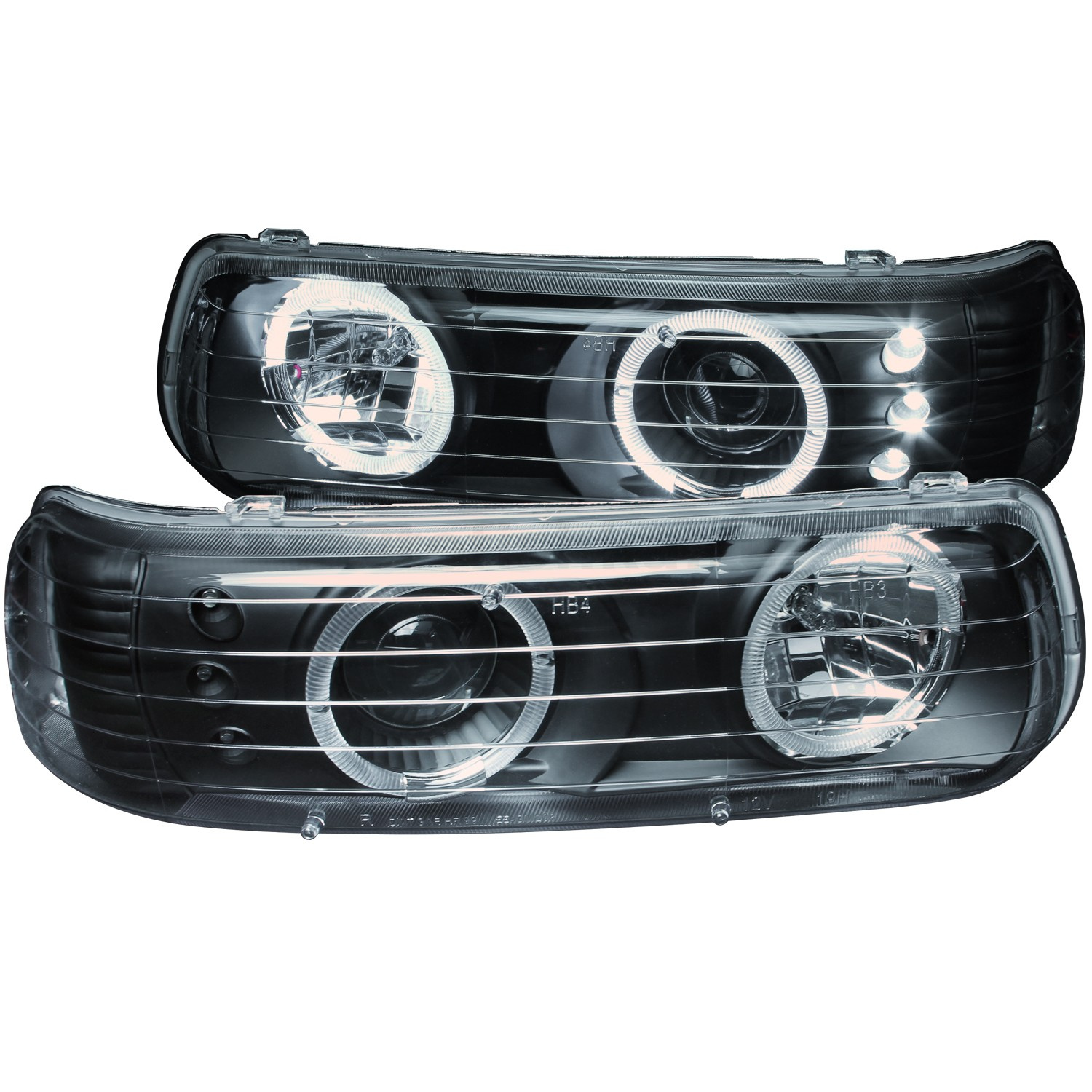 Chevrolet Tahoe C10 (1999-2006) черные передние фары со светящимися ободками, тюнинг