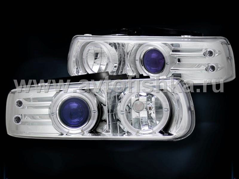 Chevrolet Tahoe, Suburban (99-06) фары передние линзовые хромированные, со светодиодами, комплект 2 шт.