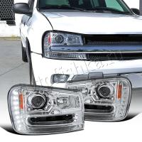 Chevrolet Trailblazer (01-09) фары передние хромированные, с DRL подсветкой, комплект 2 шт.