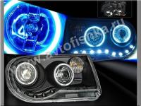 Chrysler 300C (04-) 3.0-6.1L передние фары линзовые черные, со светящимися ободками и светодиодной подсветкой, комплект 2 шт.