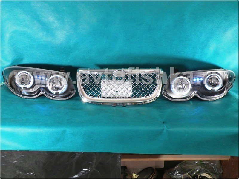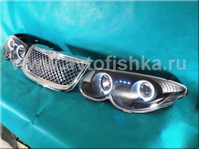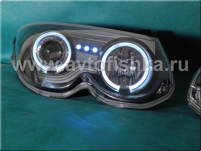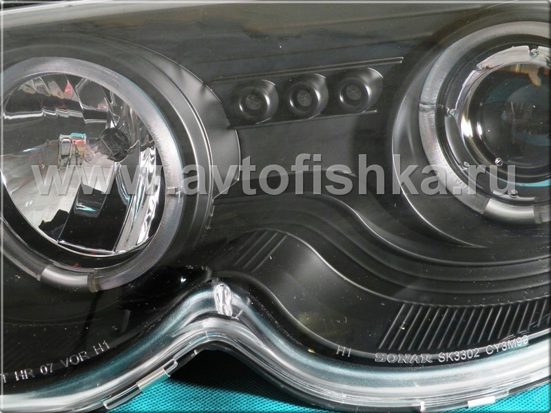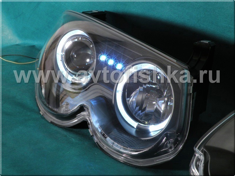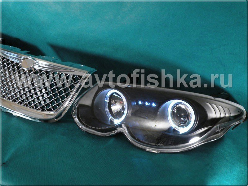 —Chrysler 300M (98-04) фары передние линзовые черные, со светящимися ободками, комплект 2 шт.
