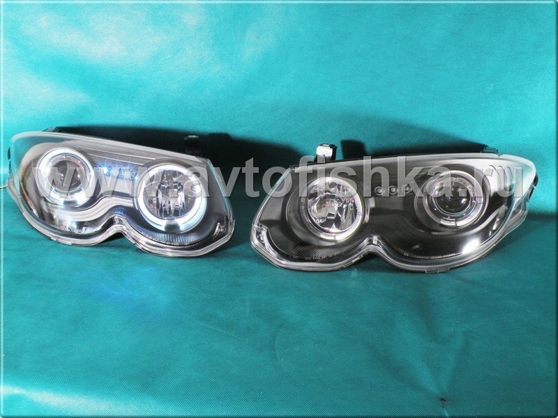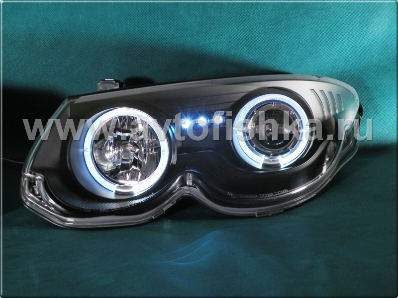 Chrysler 300M (98-04) фары передние линзовые черные, со светящимися ободками, комплект 2 шт.