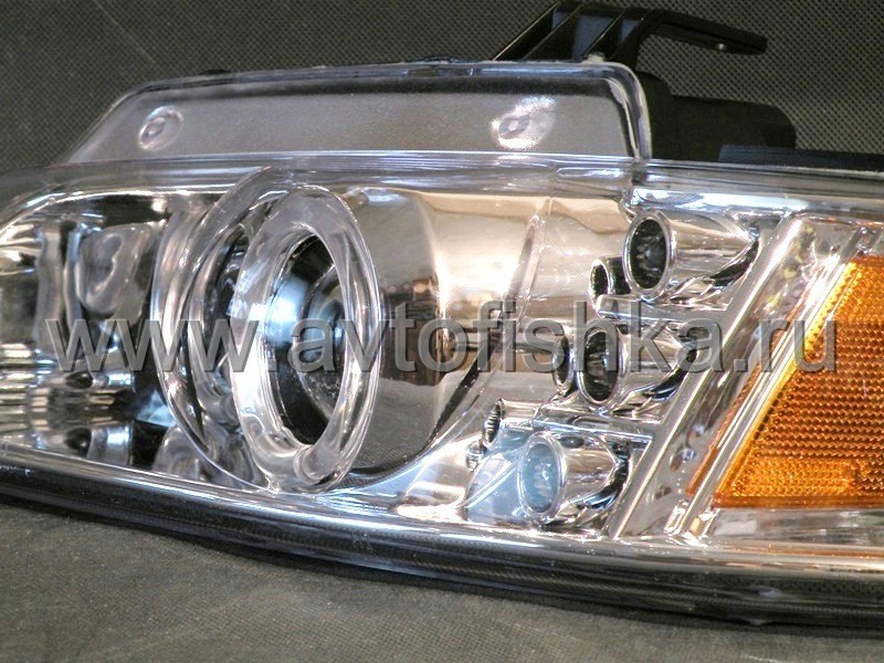 —Chrysler Town&Country, Dodge Caravan, Plymouth Voyager (96-00) фары передние линзовые хромированные со светящимися ободками и светодиодной подсветкой, комплект 2 шт.
