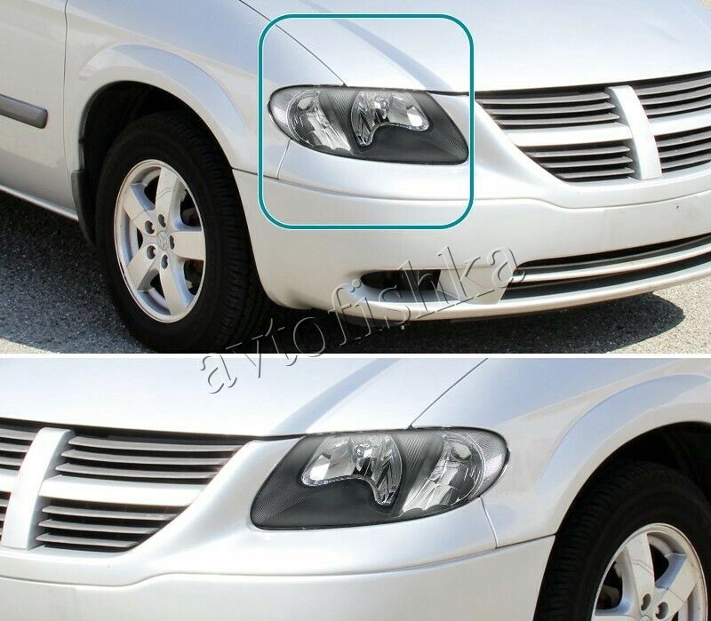 Dodge Caravan, Grand Caravan (01-05) фары передние зеркальные черные с белым рефлектором, комплект 2 шт.