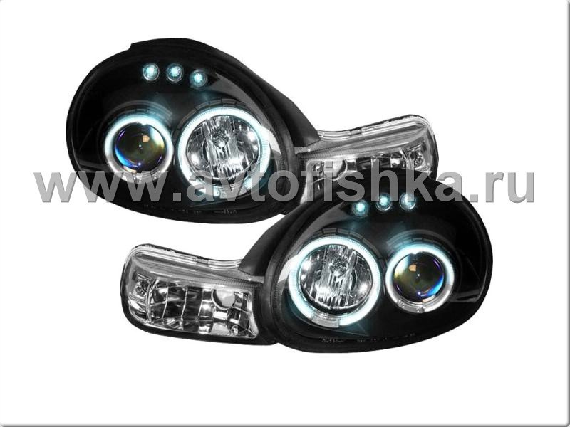 —Dodge Neon (00-02) фары передние линзовые черные, со светодиодной подсветкой, комплект 2 шт.